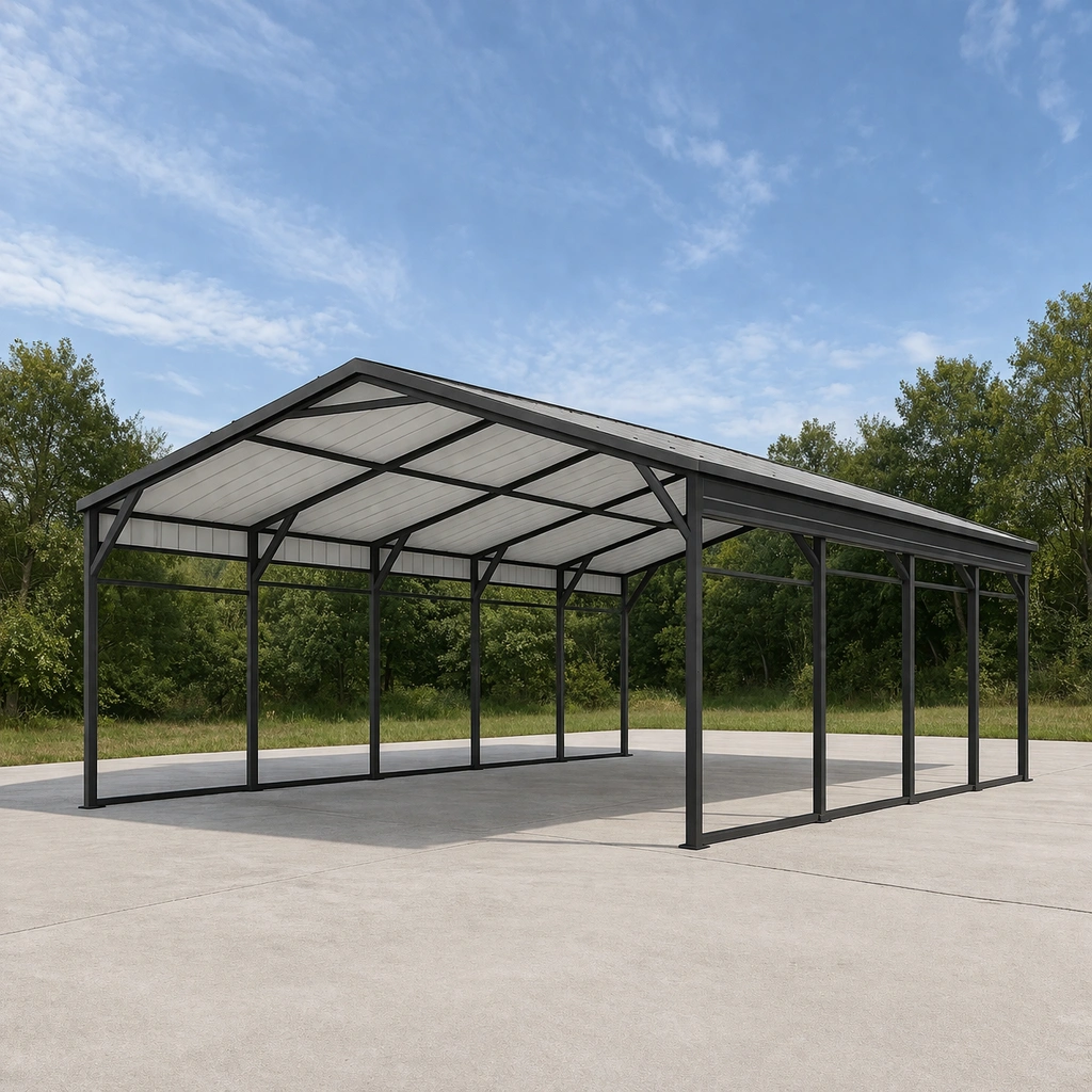 Abri de voiture métallique en acier galvanisé gris