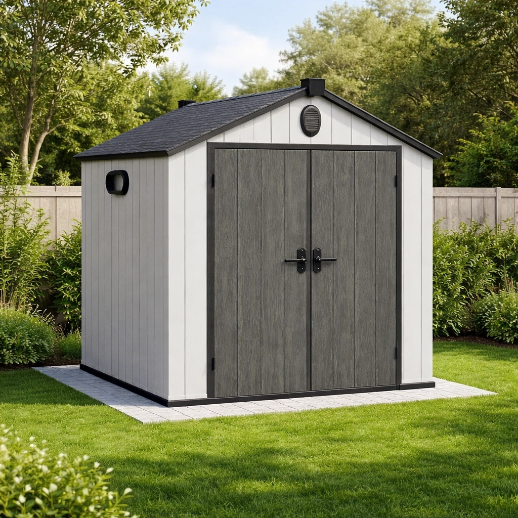 Abri de jardin en résine gris et noir 182 x 122 x 212 cm