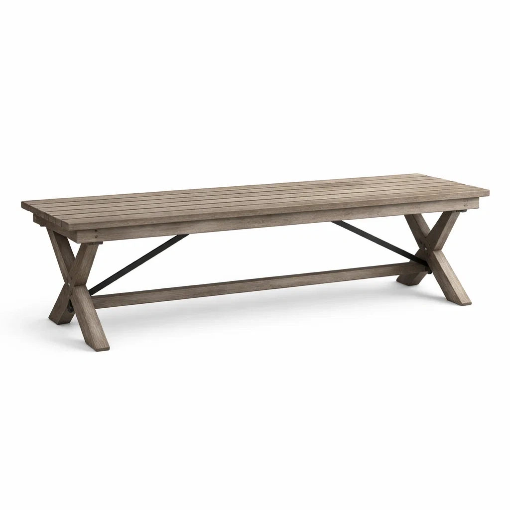Banc de jardin en bois et acier pour extérieur