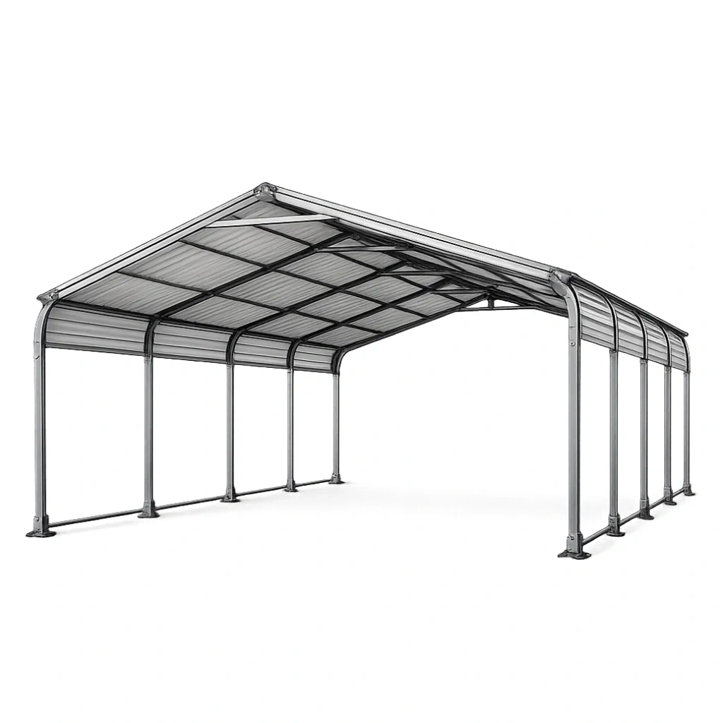 - Couverture : panneaux de polycarbonate alvéolaire, épaisseur 6 mm