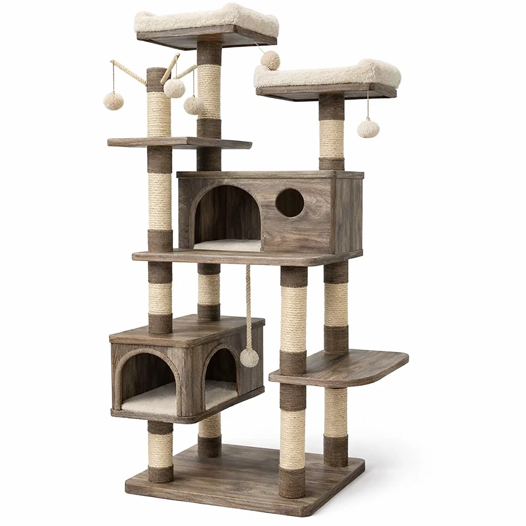Fonctionnalités : Escalade, repos, et jeu avec jouets suspendus