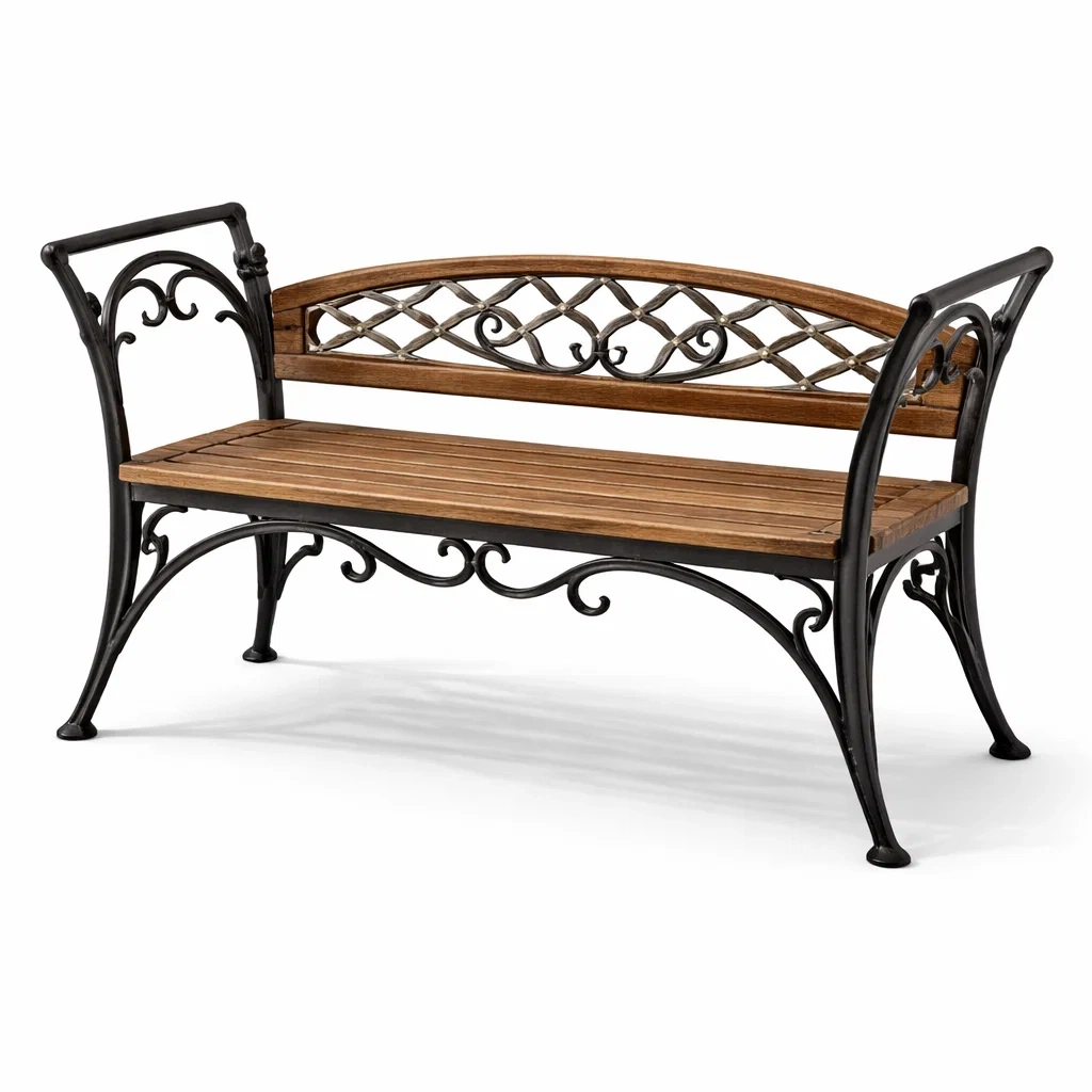 Banc de jardin en bois et fer forgé